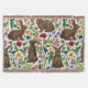 lapins et flore boisée dessinés à la main, fougères, champignons, beriies et insectes