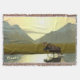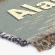 Quelque part dans l'intérieur de l'Alaska, une orignale se promène dans un étang par un après-midi ensoleillé d'automne. A l'approche de la fin de l'année, la lumière a pris le ton jaune typique qui rend tout un peu cassant. Le soleil se couche entre les montagnes de l'arrière - plan. Le texte personnalisable "Alaska" apparaît également.