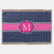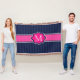 Motif élégant et de très bon goût de rayures de bleu marine avec la conception de cadre de bannière de roses indien au milieu pour votre initiale personnalisée de monogramme.