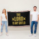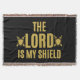 Cette couverture de jetons comporte une police d'impression en antonio avec des lettres de couleur dorée affichant l'expression biblique "Le Seigneur est mon Bouclier" avec une épée et une icône de bouclier de chaque côté dans ce thème biblique. Cette couverture est faite à partir de 75% coton et 25% polyester avec une sensation très douce lavage à la main recommandé.