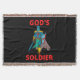 Cette couverture de lancer a les mots Soldat de Dieu dans une police en caractères gras plus des lettres rouges avec un soldat en plein armure tenant une épée plus un bouclier au centre avec un thème basé sur la foi. Cette couverture est faite à partir de 75% coton et 25% polyester avec une sensation très douce lavage à la main recommandé.