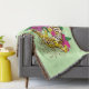 Un léopard gecko est assis parmi les fleurs et le henné dans un arrière - plan de tout vert