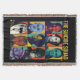 Grille colorée de style rétro avec les personnages de l'Escouade suicidaire : Capitaine Boomerang, Luna, Sol Soria, Blackguard, Amanda Waller, TDK, Savant, Mongal et Suarez.