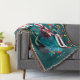 Harley Quinn entourée de fougères vertes, de fleurs et de formes diamant.