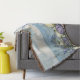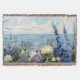 Un doux tableau côtier fleuri dans les pastels clairs, avec des fleurs violettes, bleues et blanches avec une végétation délicate et une vue paisible sur la mer au loin, parfait pour les maisons de style cottagecore ou côtier.