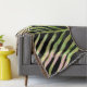 Le motif tropical à rayures diagonales sur cette Throw Blanket a été réalisé à partir d'une photo originale de ZoeSPEAK d'une façade royale de palmiers au soleil, contre un arrière - plan vert foncé de pins. Le contraste est fort entre l'arrière - plan foncé et les feuilles verts jaunes avec leurs reflets rose saumon, ce design abstrait de la nature ressemble presque à un poster de animal.