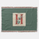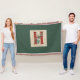 Lettre illustrée/caractéristiques initiales carré en faux bois clair et arrière - plan vert avec grange en bois rouge rempli Lettre H accentué par une tige aquarelle de feuilles eucalyptus.
