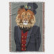 Ce portrait de caractéristiques de conception d'un lion dans le costume et le casquette d'un homme.
