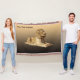 Un rendu bronzé et brun d'un lion en pierre taillée sur un arrière - plan des mêmes couleurs. Ajoutez votre propre texte.