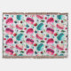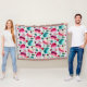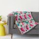 Une couverture à jetons douillette avec un motif d'aquarelle de macarons français sucrés et délicieux se balancent tout autour. Jolies aquarelles - rose, rouge et vert turquoise. Des baies aléatoires flottantes, y compris des fraises, des cerises et des bleuets. Frais et délicieux. Placez-vous sur un arrière - plan à pois vert.