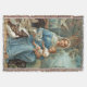 La Vierge Bleue Française jette une couverture avec une image d'une belle carte sainte française antique imprimée à la fin du XIXe siècle. Jésus et la Bienheureuse Mère sont entourés de colombes blanches et d'un paysage boisé brumeux.