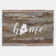 Montrez votre fierté pour votre état natal avec cette couverture jetée en planches de faux bois rustique mignon représentant le mot "home" en lettrage calligraphié blanc avec une carte en silhouette de l'état du Maine à la place de la lettre "O". Une illustration de cœur rose à l'intérieur de la carte de l'état complète le design ; vous pouvez changer la position du cœur pour votre ville natale en ouvrant l'outil de conception et en faisant glisser la forme de cœur vers votre endroit préféré. Personnalisez avec votre ville natale, le nom de votre famille et l'année de fondation pour créer un cadeau de pendaison de crémaillère parfait et mémorable ou un ajout à votre nouvelle maison.