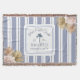 Voici notre Plaid de Maison de Plage Rayures Bleues Côtière Boho Fermette. Avec une illustration aquarelle d'orchidée et de feuilles de palmier séchées sur fond de rayures bleu marine. Idéal pour une location de vacances en bord de mer ou une maison de campagne côtière.