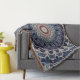 Mandala ronde sans couture motif arabe kaléidoscopique asiatique marine beige