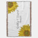 Personnalisez le joli Mariage de tournesol jaune Jetez avec les noms de la date de la mariée et du marié et la cérémonie de mariage pour créer un fiançailles personnel, la douche nuptiale ou un cadeau de mariage gardien. Cette belle couverture de mariage botanique personnalisée présente des fleurs de tournesol jaune ornant les coins d'un arrière - plan blanc.