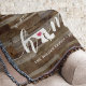 Montrez votre fierté pour votre état natal avec cette couverture de jet en planches de faux bois rustique mignonne avec le mot "home" en lettrage de calligraphie blanche et une carte en silhouette de l'État du Maryland à la place de la lettre "O". Une illustration de cœur rose à l'intérieur de la carte de l'État complète le design ; vous pouvez changer la position du cœur pour votre ville natale en ouvrant l'outil de conception et en faisant glisser la forme du cœur vers votre endroit préféré. Personnalisez avec votre ville natale, le nom de votre famille et l'année de fondation pour créer un cadeau de pendaison de crémaillère parfait et mémorable ou un ajout à votre nouvelle maison.