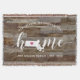 Montrez votre fierté pour votre état natal avec cette couverture jetée en planches de bois rustique faux présentant « home » en lettrage calligraphié blanc avec une carte en silhouette de l'état du Massachusetts à la place de la lettre « O ». Une illustration de cœur rose à l'intérieur de la carte de l'état complète le design ; vous pouvez changer la position du cœur pour votre ville natale en ouvrant l'outil de conception et en faisant glisser la forme de cœur vers votre endroit préféré. Personnalisez avec votre ville natale, le nom de votre famille et l'année de création pour créer un cadeau de pendaison de crémaillère parfait et mémorable ou un ajout à votre nouvelle maison.