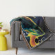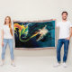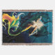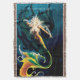 Une sirène aux cheveux blancs avec un dragon vert foncé ensemble dans l'océan