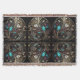 Ornement de métal décoratif de fleurs et de feuilles, dans le style d'illustration onirique, bronze foncé, et azur.