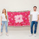 Couverture Monogramme encadré de fleurs - fuchsia et rose
