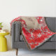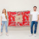 Couverture Monogramme encadré de fleurs - rouge et taupe