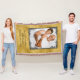 Élégant anniversaire de mariage doré encadré modèle photo sur un arrière - plan doré orné de noir, vintage, cadre entourant votre belle photo et votre monogramme et modèles de texte sous-jacent.