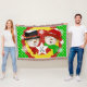 Un bonhomme de neige dans un chapeau haut, un bonhomme de neige dans une haine hivernale rouge et foulard rayé, un arrière - plan de pois blancs sur rouge, jaune et vert avec une étoile blanche que vous pouvez facilement customiser avec votre initiale monogramme! Cette jolie couverture de Noël de bonhomme de neige sera un objet précieux année après année!