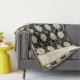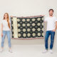 Motif de flocon de neige de Noël Faux Tricot Nom de famille et date de création couverture de jetée confortable. Noir, crème et or.