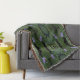 Le motif original de HomeWare sur cette couverture de jet était réalisé à partir d'une photographie originale d'un nénuphar, une fleur qui s'épanouit au milieu des feuilles de nénuphar flottant sur l'eau. Les fleurs sont d'une belle couleur bleu lavande, se détachant des feuilles de nénuphar rondes et vert foncé.