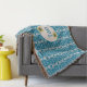 Couverture Motif turquoise & plumes paon sur Tao beige
