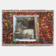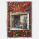 Voici la Nativité du Village ! En son coeur, la scène se déroule avec le bébé Jésus, Marie et Joseph, encerclé par un kaléidoscope d'étoiles. Un villageois est représenté en train d'ouvrir la porte, venant rendre hommage à Jésus et à la Sainte Famille, tandis que divers éléments sont placés sur un décor coloré et vibrant.