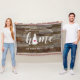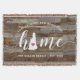 Montrez votre fierté pour votre état de résidence avec cette jolie couverture jetée rustique en planches de faux bois avec « home » (chez soi) en lettrage calligraphié blanc et une carte en silhouette de l'état du New Hampshire à la place de la lettre « O ». Une illustration d'un cœur rose à l'intérieur de la carte de l'état complète le design ; vous pouvez changer la position du cœur pour votre ville de résidence en ouvrant l'outil de conception et en faisant glisser la forme de cœur à votre endroit préféré. Personnalisez avec votre ville de résidence, le nom de votre famille et l'année de création pour créer un cadeau de pendaison de crémaillère parfait et mémorable ou un ajout à votre nouvelle maison.