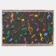 Des notes de musique colorées éparpillées sur un arrière - plan noir.