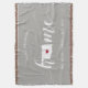 Montrez votre fierté pour votre état natal avec cette couverture grise rustique et mignonne avec le mot "home" en lettrage calligraphique blanc, où une carte en silhouette de l'état d'Oklahoma remplace la lettre "O". Une illustration d'un cœur rouge à l'intérieur de la carte de l'état complète le design ; vous pouvez changer la position du cœur pour votre ville natale en ouvrant l'outil de conception et en faisant glisser la forme du cœur vers votre endroit préféré. Personnalisez avec votre ville natale, le nom de votre famille et l'année de fondation pour créer un cadeau de pendaison de crémaillère parfait et mémorable ou un ajout à votre nouvelle maison.