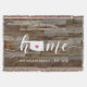 Montrez votre fierté pour votre état d'origine avec cette couverture jetée en planches de bois rustique fausses mignonnes avec « home » en lettrage calligraphique blanc et une carte en silhouette de l'état d'Oklahoma à la place de la lettre « O ». Une illustration de cœur rose à l'intérieur de la carte de l'état complète le design ; vous pouvez changer la position du cœur pour votre ville natale en ouvrant l'outil de conception et en faisant glisser la forme de cœur vers votre endroit préféré. Personnalisez avec votre ville natale, le nom de votre famille et l'année de fondation pour créer un cadeau de pendaison de crémaillère parfait et mémorable ou un ajout à votre nouvelle maison.