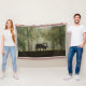 Une illustration d'une silhouette d'orignaux/élans avec des andouillers dans le graphique de vecteur de forêt. En verts et bruns de grunge. Chasse et conception d'image de chasseurs. Paysage sauvage de la vie.