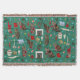 Des dessins d'un chat tortue tabby (torbie) portant une écharpe ornent cette couverture de Noël, ainsi que des dessins d'ornements vintage, une cheminée confortable, une couronne, une chaussette, des biscuits de Noël, du lait de poule, un rouleau à pâtisserie, des lumières à bulles, du houx, des flocons de neige rétro et un livre du chef-d'œuvre de Charles Dickens, Un chant de Noël. Décorez votre maison ou réchauffez-vous sous cette couverture confortable et ressentez l'esprit des fêtes.
