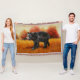 Un mignon ours noir qui se promène dans un champ de feuillage de couleur automne.