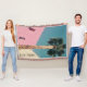 Design original inspiré du milieu du siècle par des designers de République Vintage avec un bâtiment rose poussiéreux et un grand palmier californien