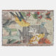 Cette image de perroquets et de fleurs jaunes est un beau collage moderne de plusieurs empreintes de peinture antique d'oiseaux, de fleurs et d'oiseaux.