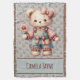 Couverture Pastel Teddy Bear Holding Flower Wear Overalls
