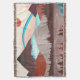 Paysage de montagne en rouge et bleu avec un lac et un arc-en-ciel bleu gras.