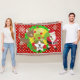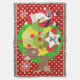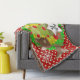 Noël père Noël et Reindeer jetez une couverture, colorée, amusante, mignonne et joyeuse! Caractéristiques Santa Clause habillé en costume rouge et casquette avec un sac de jouets sur le dos, un arbre de Noël avec des boules rouges, un renne marron mignon, des flocons de neige et des pois blancs sur un arrière - plan de rouge, vert et jaune. Il y a aussi une bannière en forme d'étoile que vous pouvez personnaliser avec votre monogramme initial!