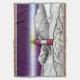 Illustration paysagère du phare Les Eclaireurs, situé dans la région sud de l'Argentine, le phare et les montagnes sont dessinés en noir et blanc. Le ciel nocturne a une teinte violette de crépuscule, et comme éclairé par le phare.