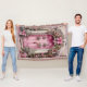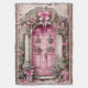Belle porte d'entrée vintage rose décorée de guirlande et arcs. Quelle jolie couverture ça fera pour un cadeau