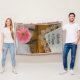 Le chic rustique Pink Daisy, Lace et Horseshoe Country Western Mariage Throw peut être personnalisé avec les noms de la date de la mariée, du marié et de la cérémonie de mariage. Cette couverture mariage de style ranch à thème équin personnalisée présente une photo florale pittoresque d'une fleur rose pâle, voile de mariée blanc, collier de perle, mouchoir en lin vintage et fer à cheval rouillé avec un arrière - plan de grange brun patiné.