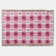En hommage aux savoureux gourmandises de l'été, ce classique motif de nappes à pique-nique est orné d'une tranche de pastèque entourée de fourmis et de graines aux carrés blancs et d'un grill de bouilloire encadré de steaks, de champignons et de morceaux de charbon de bois dans l'autre.