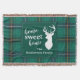 Cute home sweet home Noël jetez une couverture vous pouvez facilement customiser en cliquant sur le bouton "Personnaliser", Avec la silhouette de cerf et clan Henderson tartan en vert et or à damiers design. Idéal pour séjourner pendant les vacances. Fait un grand cadeau de ménage