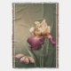 Élégante plaquette de décoration de pièce avec motif floral, avec des graphismes d'une belle fleur d'iris de couleur bordeaux et crème et papillon, sur un fond vert atténué. Personnalisez cet élément décoratif exceptionnel avec le texte de votre choix ou laissez tel quel pour une idée de cadeau charmant.