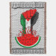 Drapeau de Palestine sur la Révolution Symbole de la liberté sorti d'une pastèque. Dans la Palestine occupée, la pastèque est un symbole de résistance. Avec ses couleurs qui reflètent le drapeau palestinien, le fruit peut être vu des murs de pierre de Gaza aux galeries de Ramallah, ce qui fait allusion à l'histoire politique d'un fruit d'été chéri. Comme la suprématie des occupants israéliens n'a pas permis aux Palestiniens d'exposer leur propre drapeau rouge blanc noir et vert original.